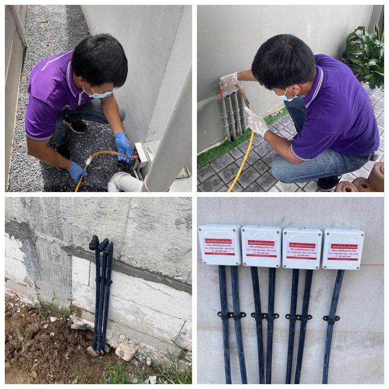 – ทำการอัดน้ำยาเข้าท่อน้ำยากำจัดปลวก