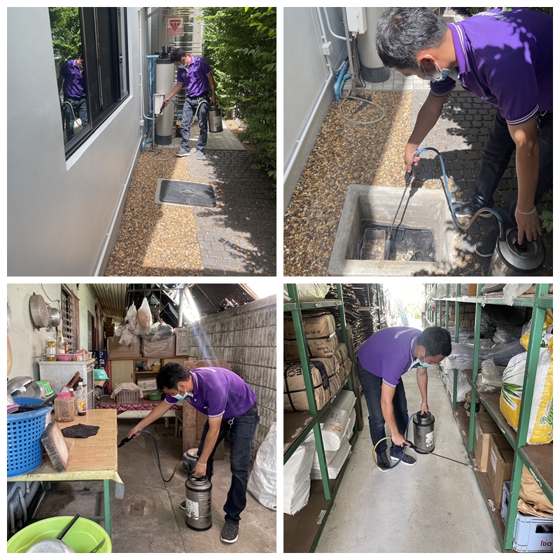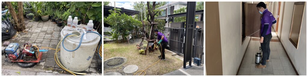 – พ่นสเปรย์น้ำยาตามขอบบัว ในตัวอาคาร