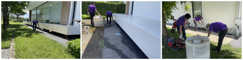 – ปักอัดน้ำยาลงดินรอบๆอาคาร บริเวณที่เป็นดิน